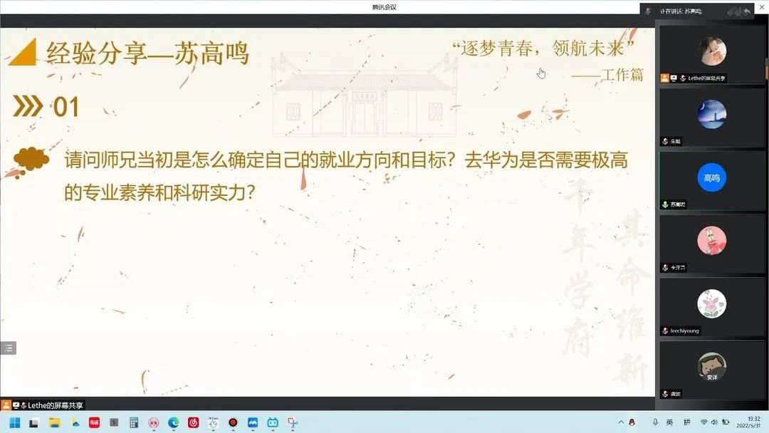 2022年5月31日晚19:00,由kaiyun·云开官网主办,kaiyun·云开官网研究生会承办的kaiyun·云开官网“逐梦青春,领航未来”毕业生就业经验交流分享会,以线上访谈会的形式顺利举行。