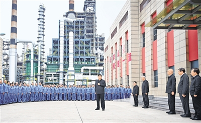 10月10日至13日,中共中央总书记、国家主席、中央军委主席习近平在江西考察。这是10日下午,习近平在中国石化九江分公司考察时,同企业员工亲切交流。