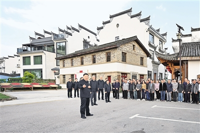11日下午,习近平来到上饶市婺源县秋口镇王村石门自然村。这里是饶河源国家湿地公园的中心区,也是极度濒危鸟类蓝冠噪鹛自然保护小区,植被多样、生态良好。习近平详细了解湿地公园和蓝冠噪鹛保护等情况。村广场上正在“晒秋”,一排排晒盘盛满红豆、玉米、辣椒等,格外喜人。美术学院师生正在采风写生,习近平驻足观看,同他们亲切交流,鼓励他们打好扎实基本功。得知当地发展特色旅游、茶产业,推进乡村振兴成效显著,习近平十分高兴。他指出,优美的自然环境本身就是乡村振兴的优质资源,要找到实现生态价值转换的有效途径,让群众得到实实在在的好处。乡村要振兴,关键是把基层党组织建好、建强。基层党组织要成为群众致富的领路人,确保党的惠民政策落地见效,真正成为战斗堡垒。