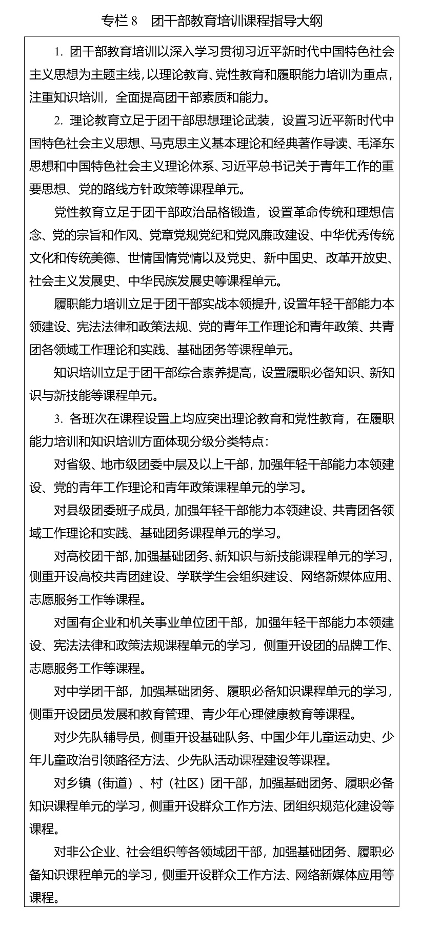 第三十二条 建立完善团干部教育培训课程开发和更新机制,构建富有时代特征和实践特色、务实管用、适应不同类别团干部岗位需求的课程体系。