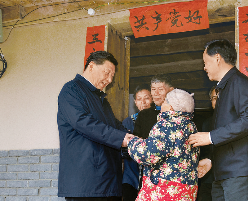 中华民族传统节日农历春节来临之际,习近平总书记来到四川考察调研,看望慰问各族干部群众,向全国各族人民致以美好的新春祝福。这是2018年2月11日上午,习近平总书记在凉山彝族自治州昭觉县三岔河乡三河村贫困户吉好也求家中看望。 新华社记者 鞠鹏/摄