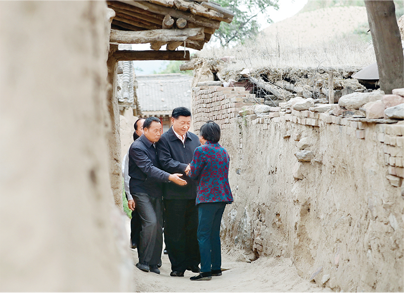 2017年6月21日至23日,习近平总书记在山西考察。这是6月21日下午,习近平在忻州市岢岚县赵家洼村看望特困户王三女一家。 新华社记者 庞兴雷/摄