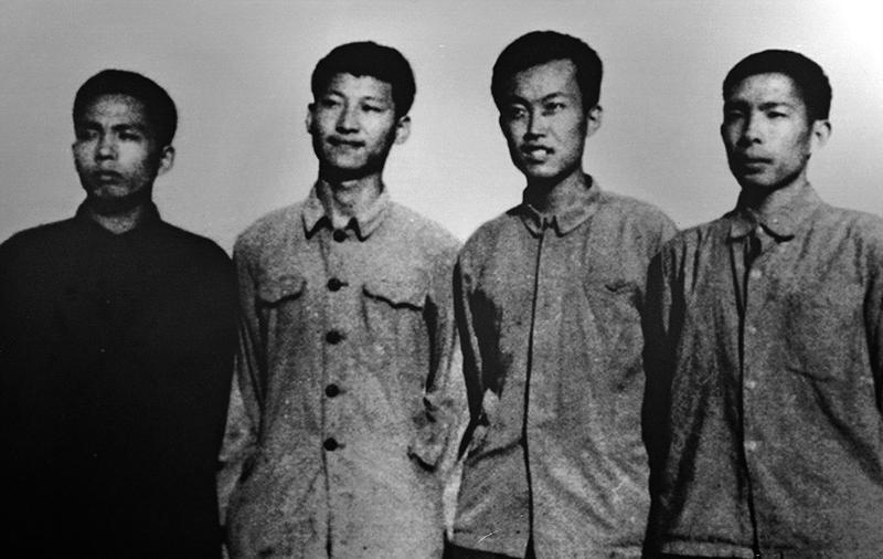 1973年,习近平(左二)与北京知青雷平生(左一)、陶海粟(左三)、雷榕生(左四)在延川合影。 (资料照片)