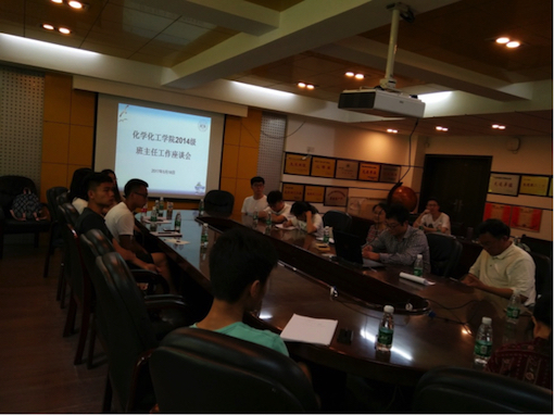 交流会伊始,刘世明老师向大家介绍了14级的学风建设以及本年级学生毕业意向的统计情况。他指出,年级仍有部分同学存在挂科问题,这需要班委们采取必要措施,帮助这些同学从“困境”中走出。同时也需要班导师们积极引导班级同学,并给予相应的指导和帮助。