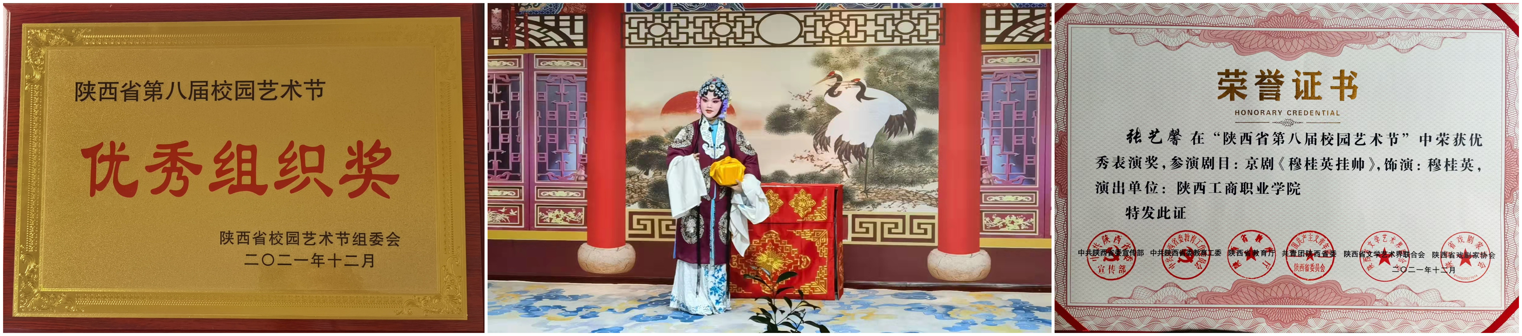 由省委宣传部、省委教育工委、省教育厅等6家单位共同主办的陕西省第八届校园艺术节于2021年4月至12月举行,学前教育专业张艺馨同学演绎的京剧《穆桂英挂帅》参加展演,获“优秀表演奖”,学校获“优秀组织奖”。