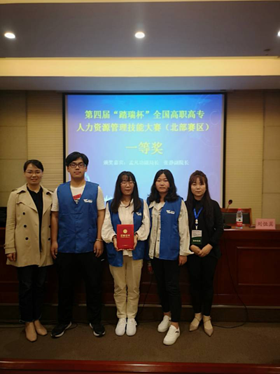5月26日,由全国人力资源和社会保障职业教育教学指导委员会主办的“第四届‘踏瑞杯’全国高职高专人力资源管理技能大赛”(北部赛区)在河北秦皇岛举行。学校公共管理学院汪宏、闫燕两位老师指导的2018级人力资源管理专业学生刘毅、张晓花、付梦飞三名同学组队参赛,荣获一等奖,汪宏、闫燕被评为“优秀指导教师”。