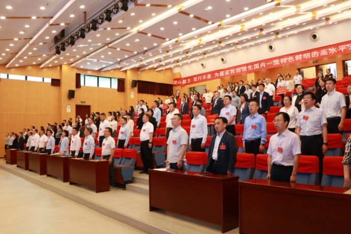 4月27日,学校一届三次教职工代表大会暨工会会员代表大会在郭杜校区综合楼报告厅召开。校党委书记龙治刚讲话,校长吴宏梅向大会报告学校工作,150名正式代表、列席代表参加会议。会议由校党委副书记王建斌主持。