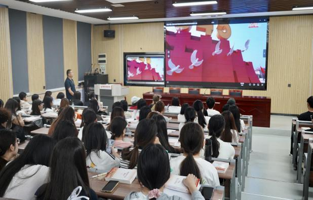 全校学生通过教室多媒体设备同步观看,重温历史、缅怀先烈,汲取奋进力量。