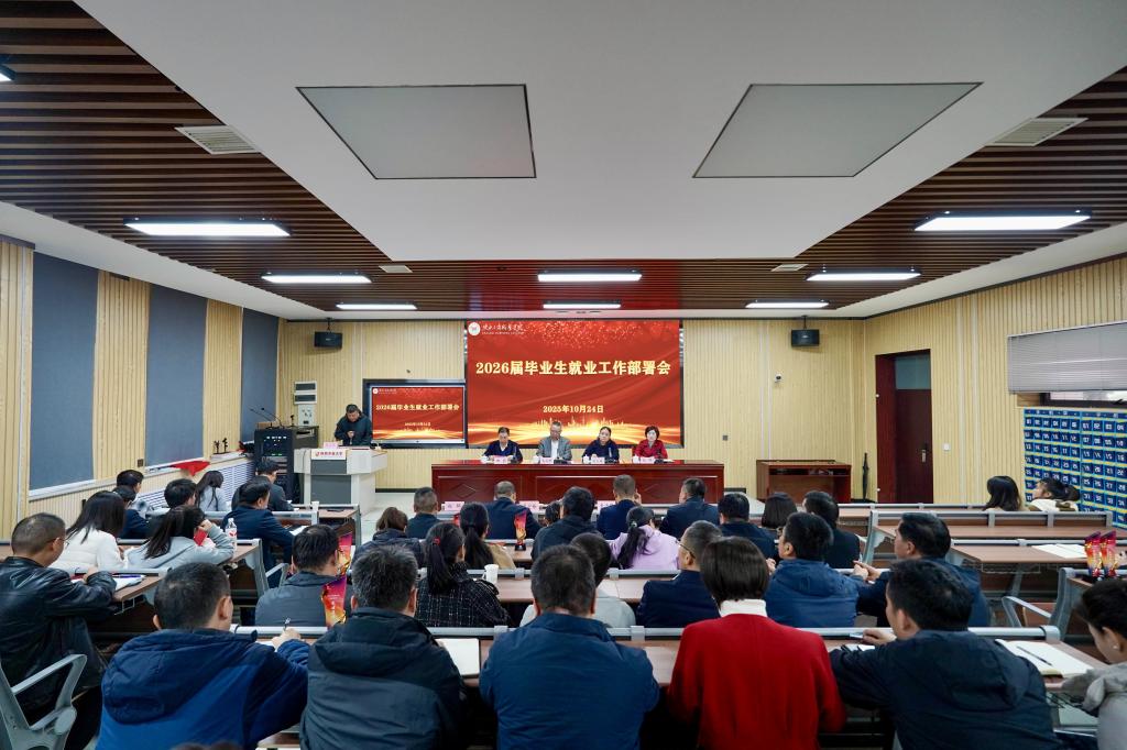 10月24日,学校在郭杜校区召开2026届毕业生就业工作部署会,会议聚焦就业工作交流与部署,并为2025届毕业生就业工作先进集体和个人颁奖。校党委书记龙治刚出席会议并讲话,校长吴宏梅宣读2025届毕业生就业工作评优文件,党委副书记田园出席会议,副校长孙晖主持会议。