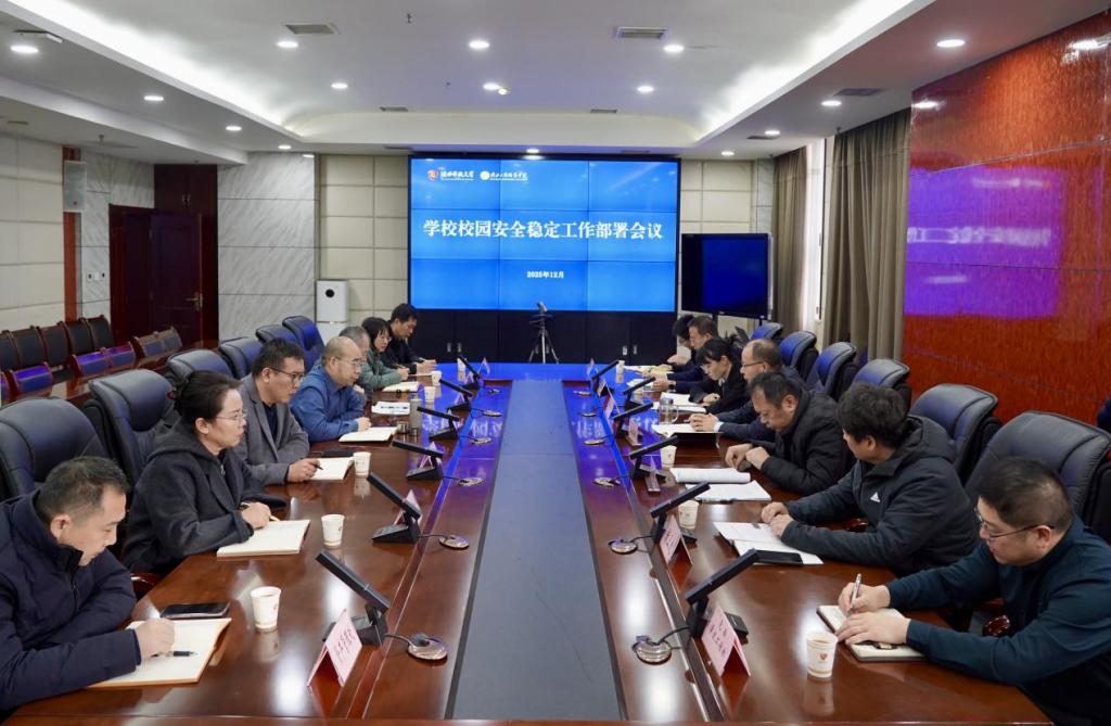 王建斌对近期和寒假期间校园安全稳定工作进行安排部署。他强调,校内各单位要认真贯彻落实省教育工委相关文件精神,压实责任、细化举措,筑牢安全防线,提高思想认识;守牢意识形态阵地,深化隐患排查;细化校园管理,夯实离校保障;压实值班责任,强化应急处置。