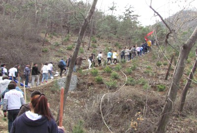 西安金龙峡风景区2014年植树节启动仪式结束后,同学们在工作人员的安排下开始植树劳动。大家整齐列队,手持铁锹,相互帮助,干劲十足,将A区和C区的所有树苗植入坑内,顺利完成了任务。在接受陕西电视台现场采访时,雷熙朋副部长表示,参加此次活动,表达了球王会师生参与志愿服务、保护生态环境的决心和信念,也是培养学生社会责任感和社会主义核心价值观的重要实践,对深化学校德育工作,弘扬雷锋精神和实现“立德树人”教育目标具有重要意义,今后将更多开展类似公益活动。