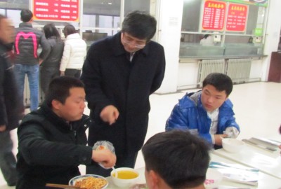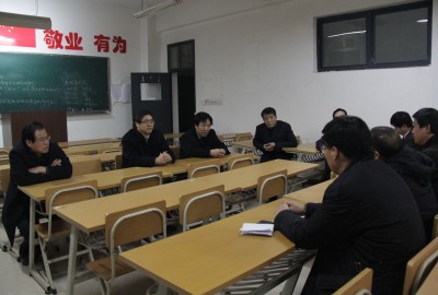 为实现学校“1233”发展目标,坚定不移地把学校中心工作转移到学科专业建设与质量工程上来,强力推动改进“校风、教风、学风”,创建“好学校、好教师、好学生”活动,2月26日,在兰新哲校长及相关领导的带领下,各院系及相关职能部门负责人从早晨7点开始,先后走到操场检查学生早操,走进食堂了解学生餐饮伙食情况,走进教室听课并与师生互动了解学生上课情况,走进宿舍检查卫生,走进各系检查学科专业建设与质量工程工作进度,晚上7点逐层逐个教室检查学生晚自习并勉励同学们勤奋学习立志成才争做“好学生”,直到晚上9点召开总结会议后才为一天的检查工作划上句号。