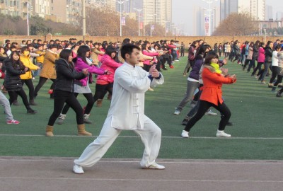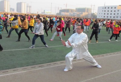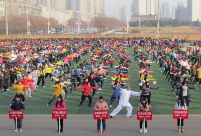此次比赛共有来自球王会2013级65个班级的3000余名学生参赛,比赛以班级为单位,分三个参赛方队进行。比赛现场气氛活跃,场面壮观,气势宏大。同学们冒着-5°的寒冷天气,个个精神饱满,伴随着悠扬的太极拳音乐,同学们以熟练优美的流畅动作,汇报了一个多月来的训练成果。同学们优雅大方的武术动作不仅展现了中华武术的独特魅力,也展现了球王会大学生的青春风采。各方队的精彩表演赢得了在场师生的阵阵掌声。