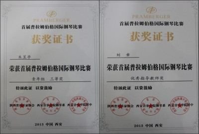 近日,由陕西省音乐家协会、西安音乐学院钢琴系主的“2013首届普拉姆伯格国际钢琴比赛”在西安落幕,共有来自全国各地600余名学生参加了比赛。经过激烈角逐,艺术系朱昱亭同学凭借过硬的专业素质和出色的发挥,获得青年组三等奖的优异成绩,艺术系教师刘章荣获优秀指导教师奖。这是球王会钢琴专业首次在国际性比赛中获奖,为学校赢得了良好的社会声誉。