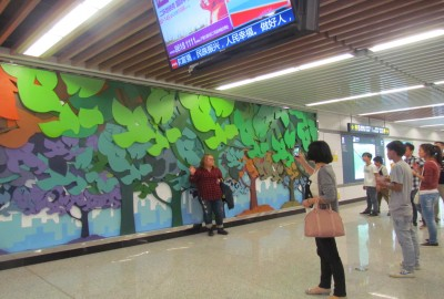 教学实践中,该系组织学生参观了地铁一号线北大街站、三桥站、枣园站、汉城站等站点的地铁人文景观墙,并特邀请内部装饰设计师予以全程讲解。设计师结合“快乐出行”、“朱鹮家园”、“枣愿”、“炫彩西安”等景观墙,向同学们详细介绍了装饰设计理念,并就装饰材料的选取和工艺与同学们进行了互动交流。同学们积极思考,不断发问,设计师耐心解答,整个过程热烈而有序。教学实践活动强化了学生对课堂知识的理解,进一步激发起同学们的学习热情,取得了良好的效果。