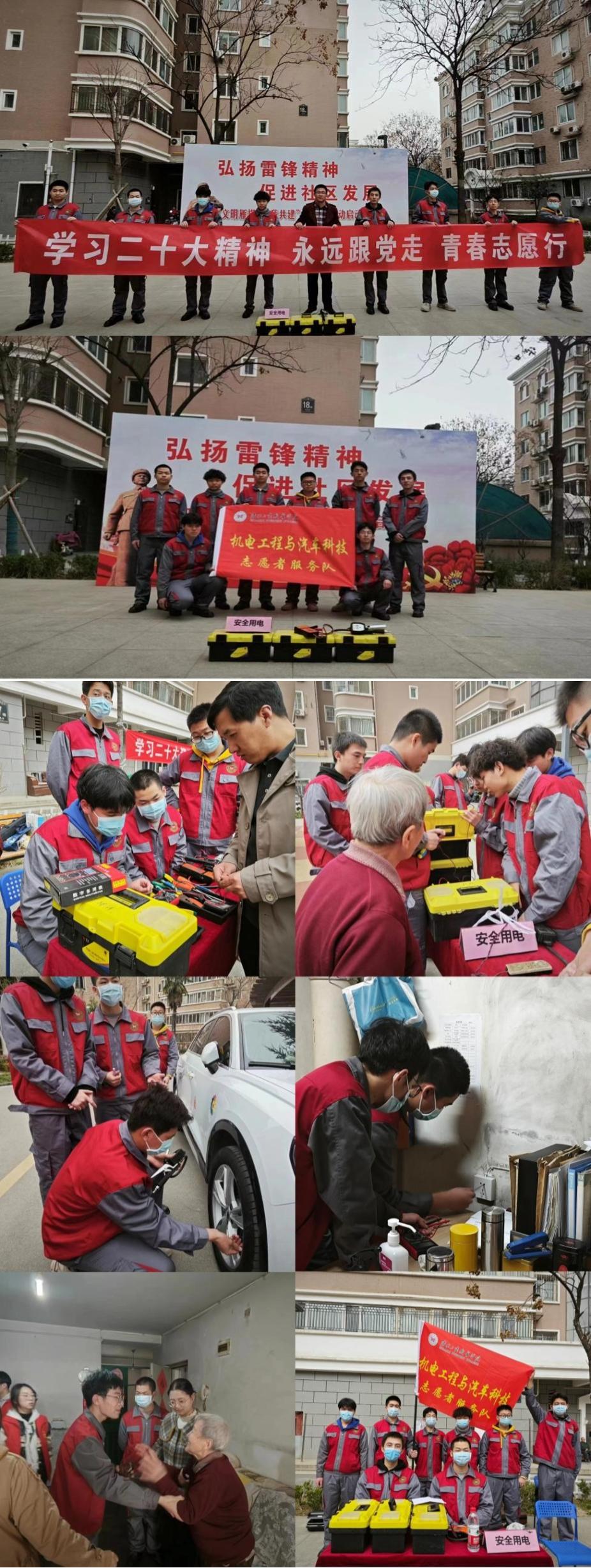 活动中,机电工程与汽车科技学院师生利用自己的专业知识,为社区群众宣传安全用电和汽车保养知识,开展了汽车胎压检测、汽车电瓶电压检测、上门家电维修、安全用电知识讲解等志愿服务。志愿者对社区群众提出的问题,均耐心予以解答,还到群众家里维修电器、排查电路隐患。