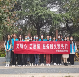 为深入学习宣传贯彻党的二十大精神和习近平总书记对深入开展学雷锋活动的重要指示精神,发挥榜样力量,推动校风、学风建设,营造文明互助和谐美丽的社会氛围,3月30日下午,学前师范学院学生党支部、团总支联合在学校周边开展“文明心 志愿行 服务创文我先行”主题志愿服务活动。