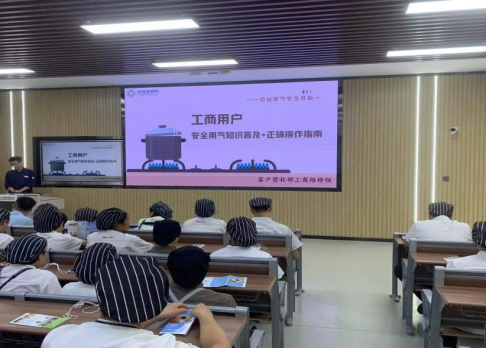 天然气公司授课人员从燃气设备使用、安全检查知识、事故案例分析、用气须知等方面,围绕燃气的特性、安全用气使用管理规定、常见的燃气使用隐患等内容进行了细致生动的讲解。