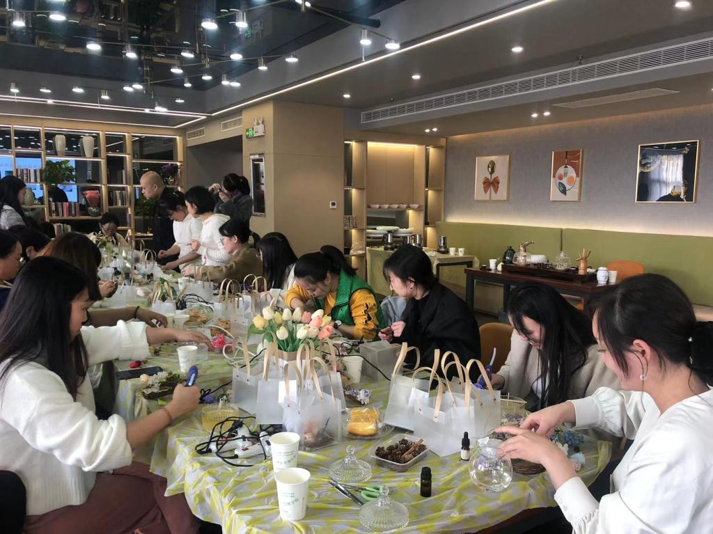 活动在会计金融学院副院长李彤一曲动听的《春江花月夜》中拉开了帷幕,张瑞馨老师为大家讲解了中国茶文化的渊源和品茗礼仪,贾卫鸽老师介绍了非物质文化遗产长嘴壶并展示了长嘴壶茶道艺术“凤舞九天”。最后,大家在花艺师的指导下,完成了永生花花环、烛台、蜡烛的制作。