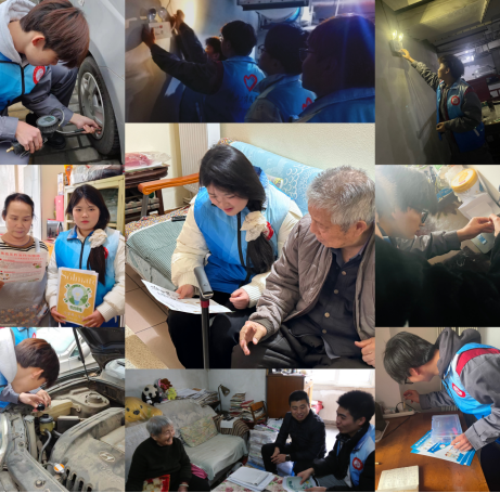 机电与汽车科技学院师生发挥自身专业知识,为社区群众宣传安全用电和汽车日常保养知识,开展了汽车胎压监测、汽车电瓶电压检测、上门家电维修、安全用电知识讲解和节能环保知识宣传等。