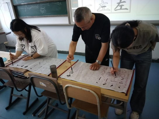 张明老师教授的课为第六单元的Chinese Calligraphy。他从什么是中国书法、为何需要学习中国书法和如何写好中国书法三个方面带领学生深度理解课程内容,培养学生的语言应用能力,拓展对单元大概念的理解,学会用英语传播中国文化。在教学过程中张明老师亲自指导学生们练习书法,改正握笔姿势,教授书法的基础知识等。