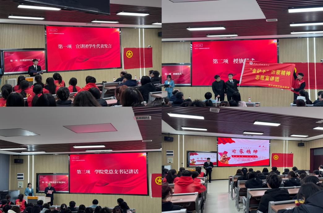 启动仪式上,宣讲团队长闫色正同学作了表态发言,表达了青年学子传承红色基因的决心;校团委书记朱孟彬向宣讲团庄严授旗。会计金融学院党总支书记姬建军在讲话中介绍了沂蒙精神,并对宣讲团提出了要求、期望与嘱托。