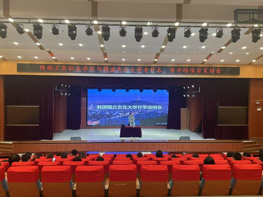 6月20日下午,韩国忠北国立大学就两校合作开展的"3+1专升本"及"3+1+2专升硕"项目在郭杜校区报告厅进行专题宣讲。200余名学生代表参加活动,并同步线上转播。