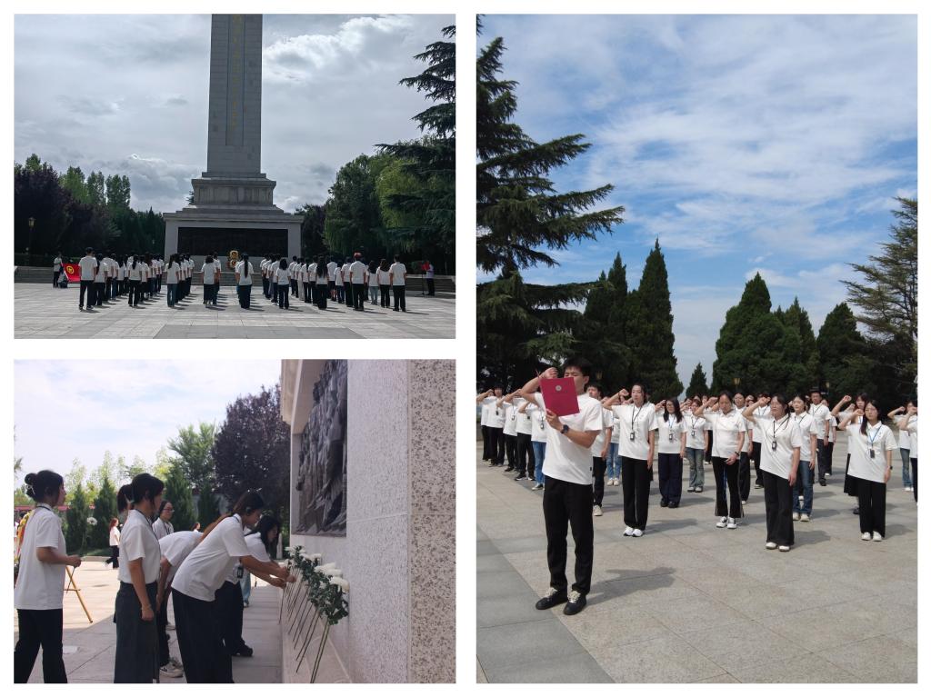 在渭华起义烈士纪念碑前,师生们整齐列队、庄严肃立,怀着崇高敬意向烈士敬献花篮,全体共青团员重温入团誓词。