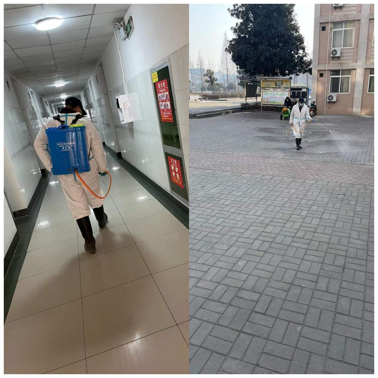 防疫消杀人员作业过程中,穿着整套防护服密不透气,而且工作量较大,即便在寒冷的冬季,每次工作不到20分钟,里层的工作服就已完全浸湿,但即使是这样,他们也一点都不能松懈,始终穿着防护服坚持把消杀任务完成,不放过任何一个角落,一栋学生公寓不停顿的消杀作业平均需要1个小时,每日按规定要进行两次消杀,即便工作量再大,他们也从来没有怨言,始终坚守在疫情防控前线,筑牢疫情防控坚固防线。