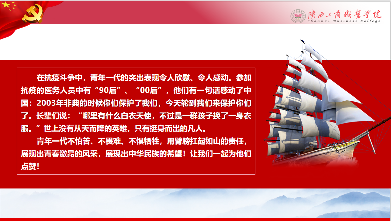 疫情发生以来,根据省委教育工委相关文件精神和学校的统一部署,马克思主义学院充分发挥思政课主阵地、主渠道作用,扎实做好疫情防控期间思政课教学工作。学院本着“线上教学传知识,春风化雨育良才,立德树人出真知,齐心协力共抗疫”的思政课的教学目的,组织力量利用现有的资源、条件,制作了《携手同心 共克时艰——弘扬伟大抗疫精神》专题讲座课件、《我们在一起——球王会体育官方网站师生战“疫”掠影》微视频,在思政课堂分享播放。思政课教师认真开展集中备课,创新教学形式,丰富教学内容,及时将省委省政府以及校党委的部署安排和全省全校上下众志成城共抗疫情的生动素材融入思政课,使学生更加充分认识到:中国共产党好,中国特色社会主义制度具有无比的优越性。上好疫情防控“思政课”,加强思想政治教育,将进一步推进爱国主义教育、生命教育、感恩教育,引导广大学生坚定“四个自信”,弘扬伟大抗疫精神,坚定战胜疫情的信心决心。