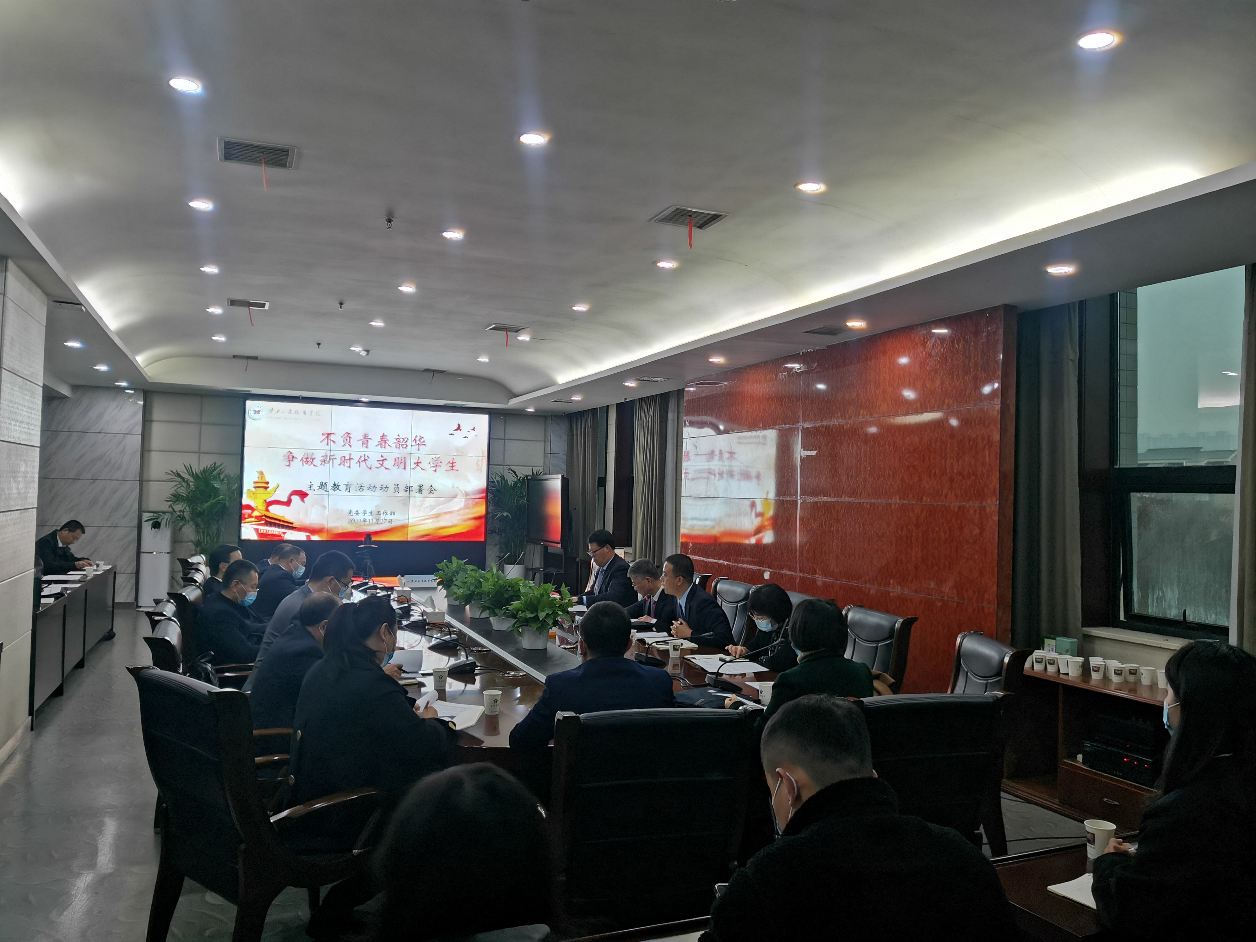 刘锋指出,为深入贯彻落实习近平总书记关于教育的重要论述,进一步提升学校大学生思想政治教育工作实效,健全和完善“三全育人”大格局,提高学生思想道德修养和文明素养,学校决定启动“不负青春韶华争做新时代文明大学生”主题教育。他强调,一要提高政治站位,将教育活动作为践行和落实“立德树人”的根本任务来开展,努力培养有理想、有本领、有担当的社会主义合格建设者和接班人;二要明确工作职责,精心部署推进。按照总方案周密制定本学院(部门)实施办法,落细落小各项工作举措。二级学院要切实承担主体责任,广泛开展动员,确保全覆盖。三要加强工作协调配合,形成工作合力,确保主题教育各项任务落实到位,并形成长效机制。