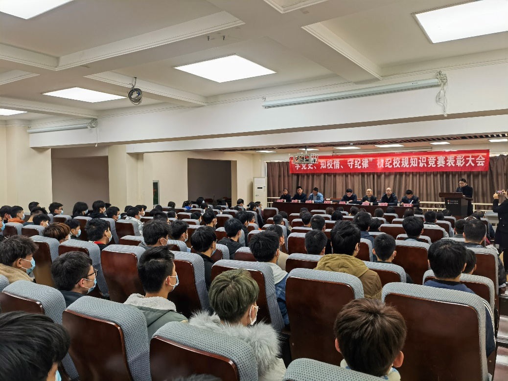 为进一步深入推进党史学习教育,引导广大师生遵纪守法、爱党爱校,共同建设文明安全稳定校园,明德校区举办“学党史、知校情、守纪律”校纪校规知识竞赛,12月8日下午,竞赛表彰大会在明德校区举行,校党委副书记、纪委书记、监察专员张军利,学校党委委员、纪委、监察办综合室主任朱瑜出席表彰大会。会议由中德机电与汽车科技学院党总支书记陈荣主持。