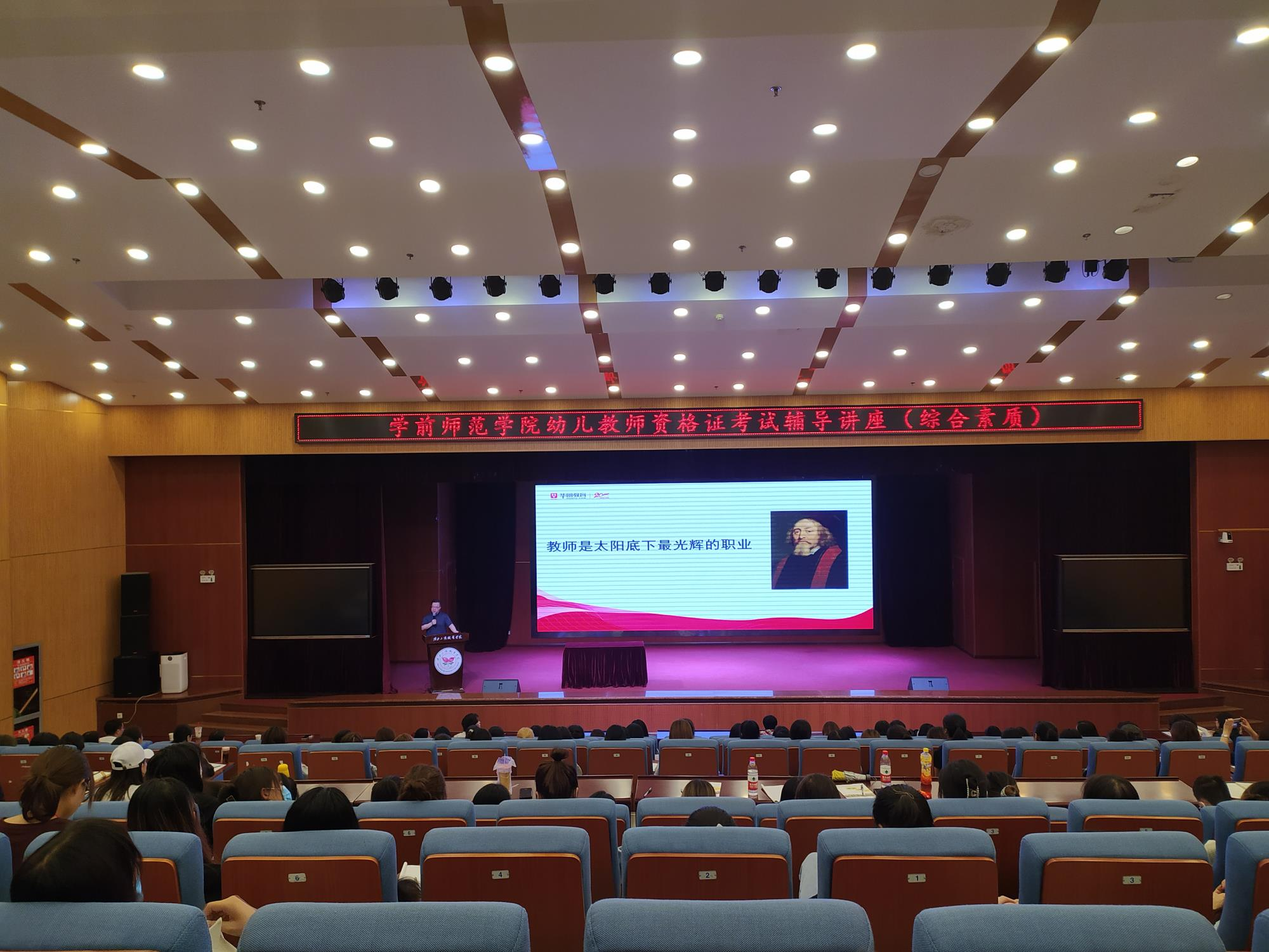 9月24日下午,学前师范学院邀请华图教育专家来校进行教师资格证考试的笔试科目辅导,辅导讲座分为综合素质和保教知识与能力两个专题,2019级在校生及学院部分教师参加培训。华图教育的高宇航、官欣老师基于多年辅导经验,分别对《综合素质》和《保教知识与能力》的考点内容做出系统的梳理,对近年来的考情做了分析、对各种题型的答题技巧做出总结归类,并拓展了面试技巧。