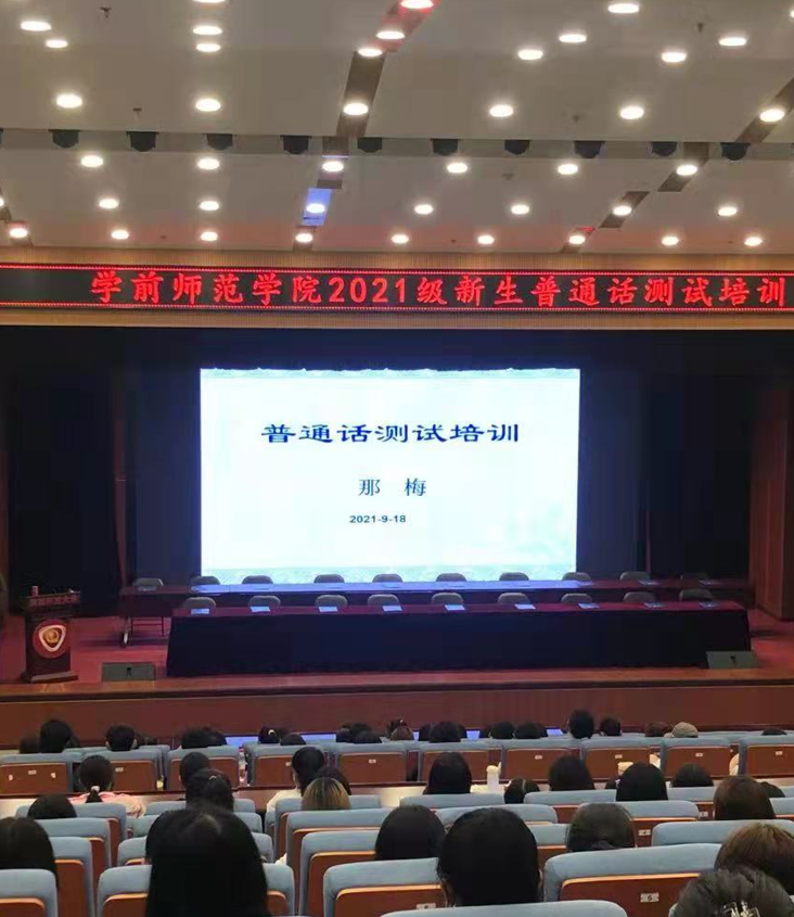 为了加强对学生的专业技能指导,第24届全国普通话推广宣传周期间,学前师范学院举办两场专题讲座。9月18日,学前师范学院院长、国家级普通话测试员那梅副教授为2021级学前教育专业学生进行了一场“普通话测试”专题培训,使学生更好地掌握普通话基础理论与训练方法。
