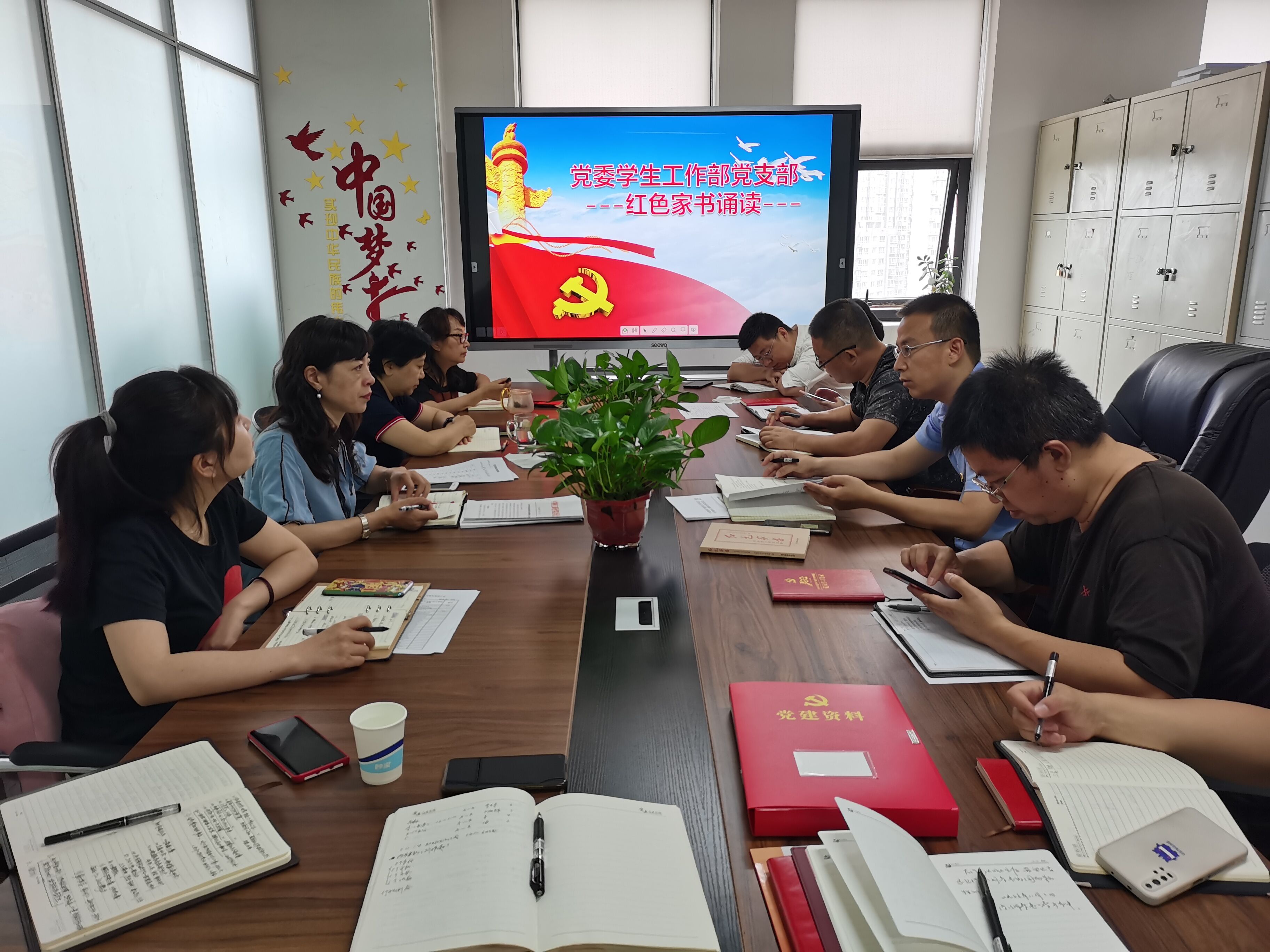 为深入推进党史学习教育,强化学生工作责任担当,党委学生工作部党支部自6月起开展每周“诵读红色家书,传承红色基因”主题党日活动,通过诵读红色家书、畅谈初心使命、重温入党誓词,推进学史明理、学史增信、学史崇德、学史力行。