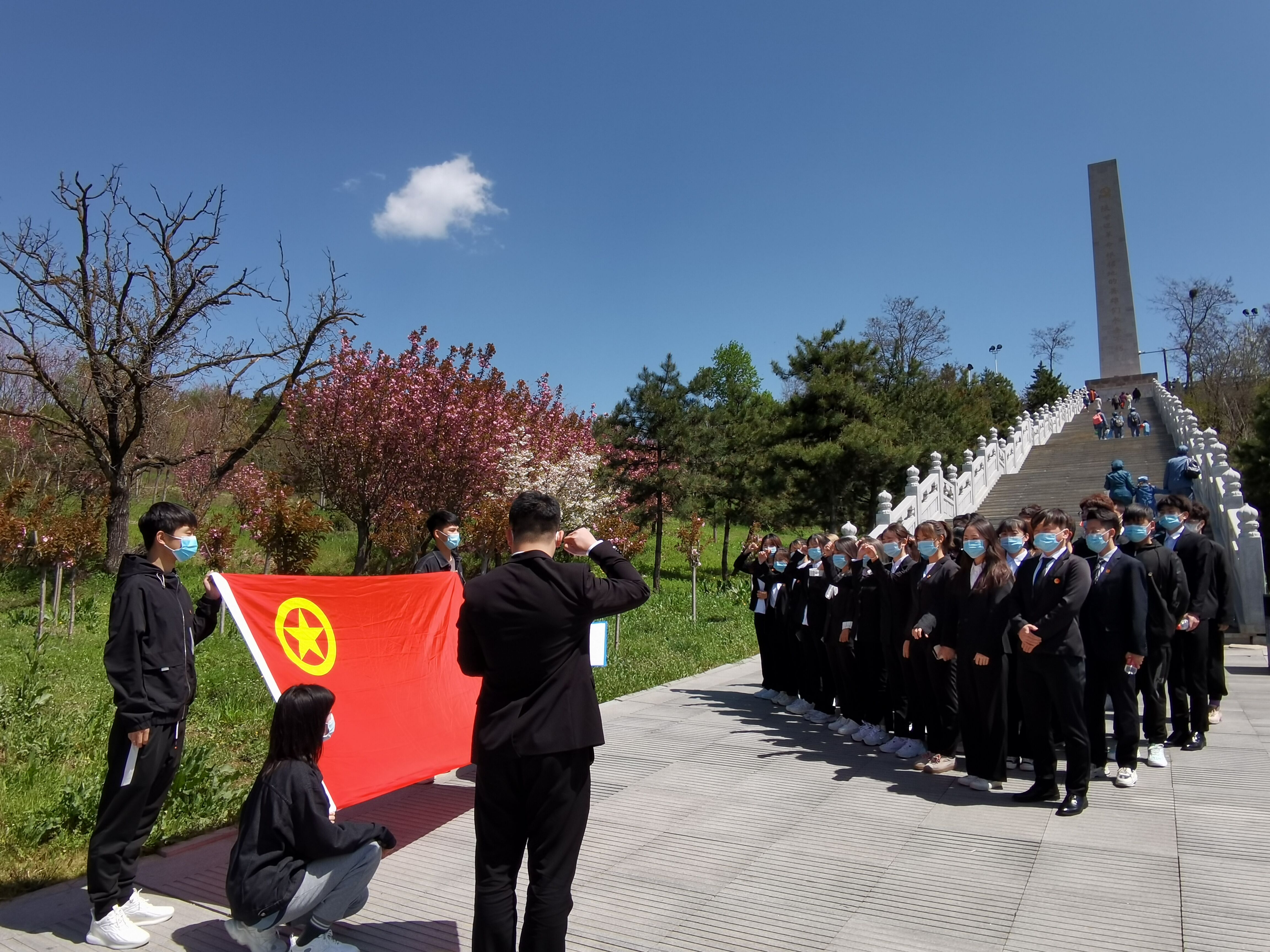 在英雄纪念碑下,大家面向团旗庄严宣誓,重温了入团誓词。