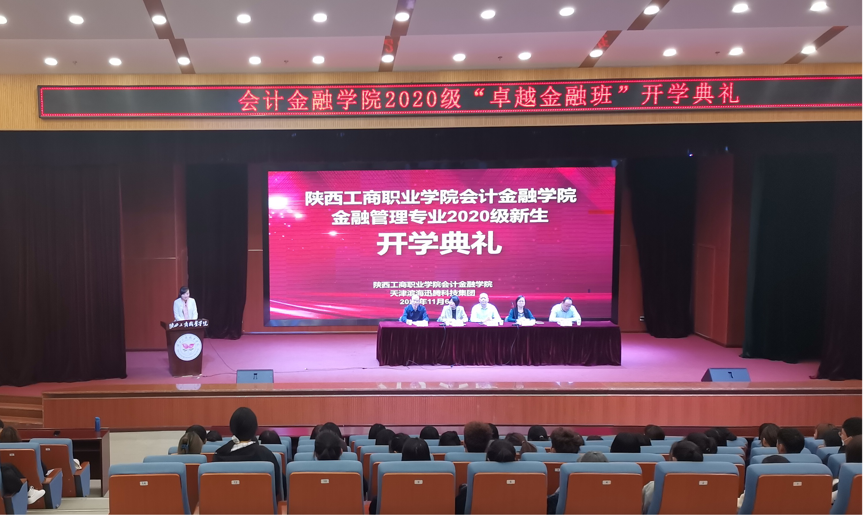 11月6日下午,会计金融学院在郭杜校区综合楼报告厅举行2020级“卓越金融班”开班典礼,“卓越金融班”是会计金融学院与天津滨海迅腾科技集团有限公司合作共建。滨海迅腾董事长邵荣强、副总裁韦钰和会计金融学院院长王晓红、副院长李彤参加了典礼。2020级229名“卓越金融班”新生和2019级学生代表参加。典礼由会计金融学院副院长姬建军主持。