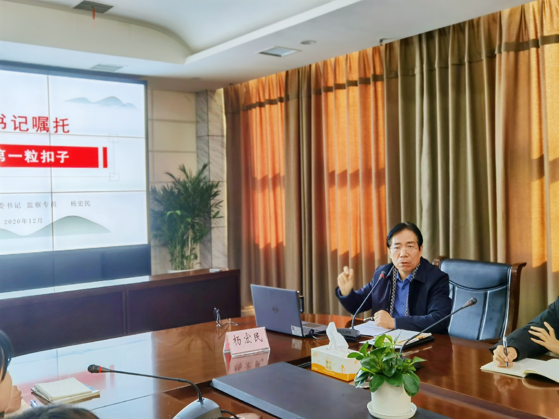 为贯彻落实习近平总书记关于加强学校思想政治理论课建设的重要讲话精神,推动思政课改革创新,12月10日上午,校党委副书记、纪委书记、监察专员杨宏民在郭杜校区综合楼四楼会议室为2020级学前教育专业近百名新生讲授思政教育课。