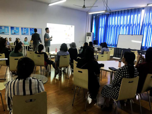 丁秦向大家介绍了化妆的基础知识,并邀请教师上台进行化妆演示。大家纷纷表示,通过学习化妆技巧能够塑造女性健康、自信的个人魅力,更让女教职工体会到学校关爱。