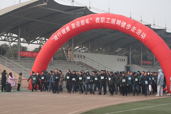 为丰富校园生活,提升教职工身体素质,1月2日,在郭杜校区开展了以“健行健康 喜迎新年”为主题的教职工湖畔健步走活动。校党委副书记罗新远、纪委书记杨宏民、副校长郭红霞,各分会教职工200余名参加了活动。