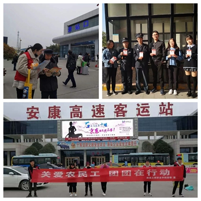 寒假期间,学校各团总支组织学生在家乡开展了“理论下基层”政策宣讲、“追忆先辈路”弘扬爱国情怀、“温暖帮扶”志愿服务、“感谢师恩”主题实践等形式多样的志愿服务活动,共有1203名学生参与,提交社会实践报告684篇、图片1575张、微视频52部。校团委组织了2支志愿服务小分队,于2月10日(大年正月初六)分赴安康高速客运站和火车站开展了“关爱农民工,团团在行动”志愿服务活动,给进城务工人员送上了200双手套和200个口罩,发放了500余张精心制作的彩色宣传单页,宣传讲解了防范电信诈骗和劳动者权益保护相关知识。