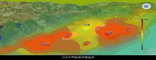 当不利气象条件发生时,如果人为的生产和生活活动一如既往地排放污染物到大气环境中,污染便会持续累积加重并蔓延,污染连绵成片,污染气团随风流动,形成大范围的区域性空气重污染。