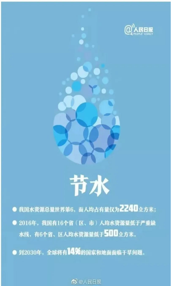 1. 节约用水,珍惜每一滴水资源。大家应该养成随手关水龙头、合理利用水资源的习惯,尽量减少浪费。在洗手、刷牙、洗衣等日常生活中,要注意节约用水。