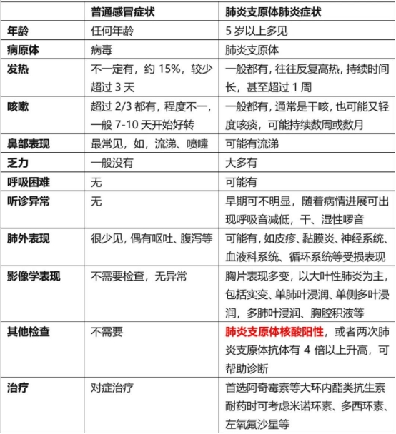 1.如何区分肺炎支原体肺炎和普通感冒?