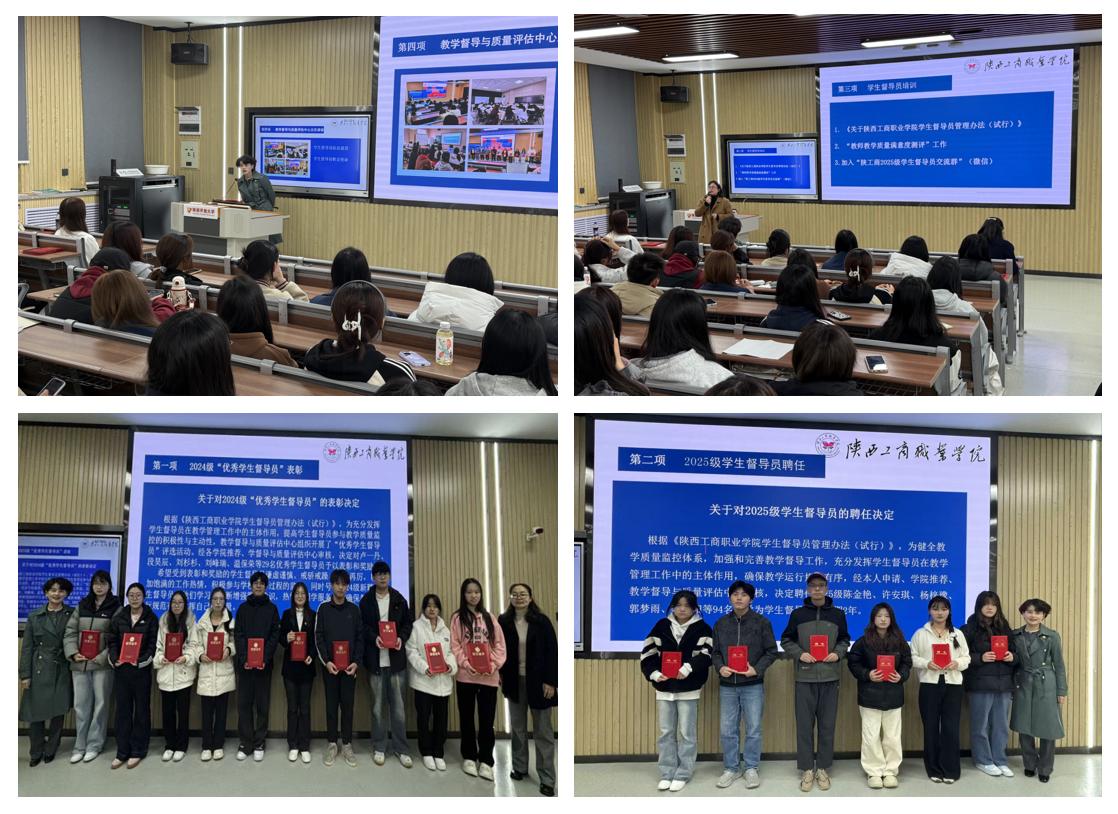 为进一步发挥学生督导员在教学质量提升中的桥梁与纽带作用,2024年11月12日,教学督导与质量评估中心组织召开郭杜校区2024级“优秀学生督导员”表彰暨2025级新聘学生督导员聘任培训会。