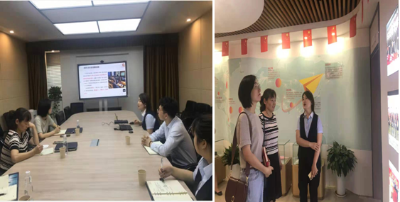 在金融管理部部长梁瑛的带领下,督导调研组首先参观了易通人力资源股份有限公司办公场所,了解公司企业文化和机构设置。座谈交流环节,梁瑛部长详细介绍了企业的发展历程、经营状况、校企合作开展情况、球王会学生实习情况、各实习单位对学生的评价、存在的问题、对学校的建议等,并对下一步校企合作拟开展的工作提出了具体的设想与想法;杜建华主任介绍了此次实习督导调研的目的、球王会学生顶岗实习的模式等。双方还就进一步深化校企合作、促进产教融合、建立校企合作平台等方面进行了深入探讨交流。