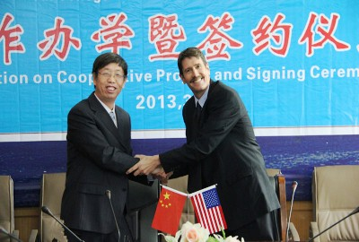 3月14日,校党委副书记、校长王振龙与美国佛罗里达技术学院校长华莱士·庞德在校会议中心共同签署合作交流协议书。签约仪式由纪委书记徐晓曦主持,佛罗里达技术学院中国项目经理施玉勋博士、合作办学处处长林静、党政办公室主任杨保建、教务处处长刘志选、现代服务系主任王中锋,合作办学处副处长古永司、教务处副处长王凯等参加了签约仪式。